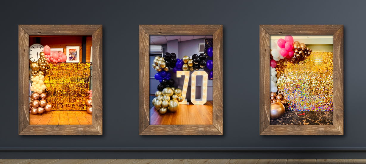 Book our Balloon Decorated Light-Up Numbers & Sequin Walls for a stunning party centrepiece – custom colours available!