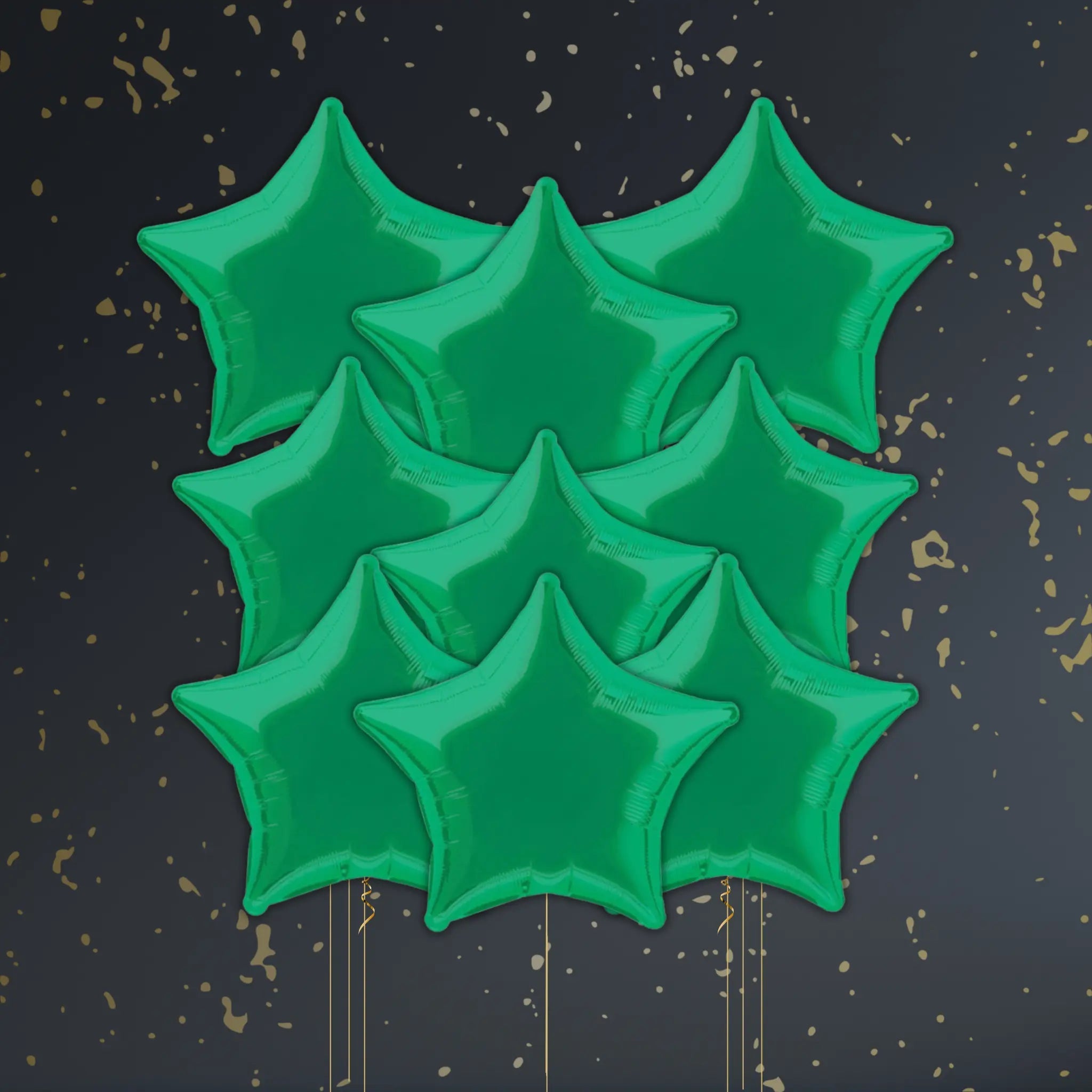 🎈 Available in quantities of 1, 3, 6, or 9 helium-filled green star-shaped balloons