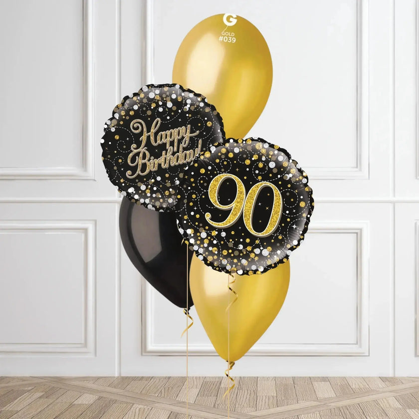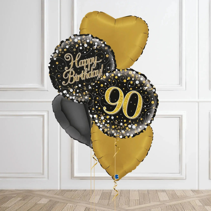 Gold Sparkle 90th Birthday Balloon Bouquet