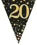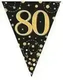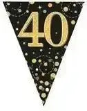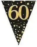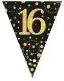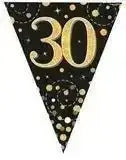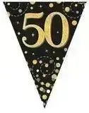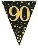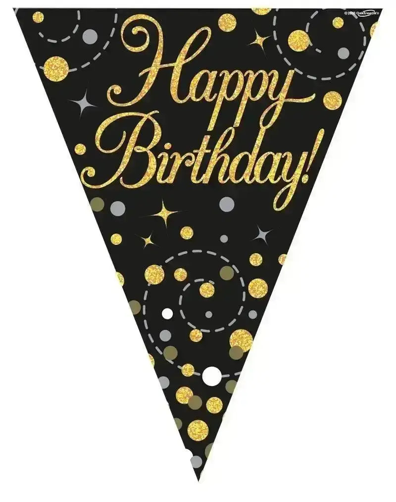 Party Bunting Sparkling Fizz Birthday Black & Gold Holographic 11 flags 3.9m