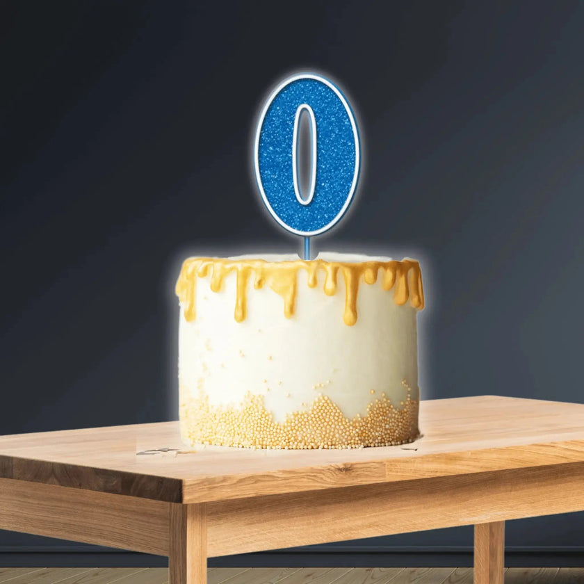 Glitter Number 0 Candle – 7.5cm, Blue & Silver