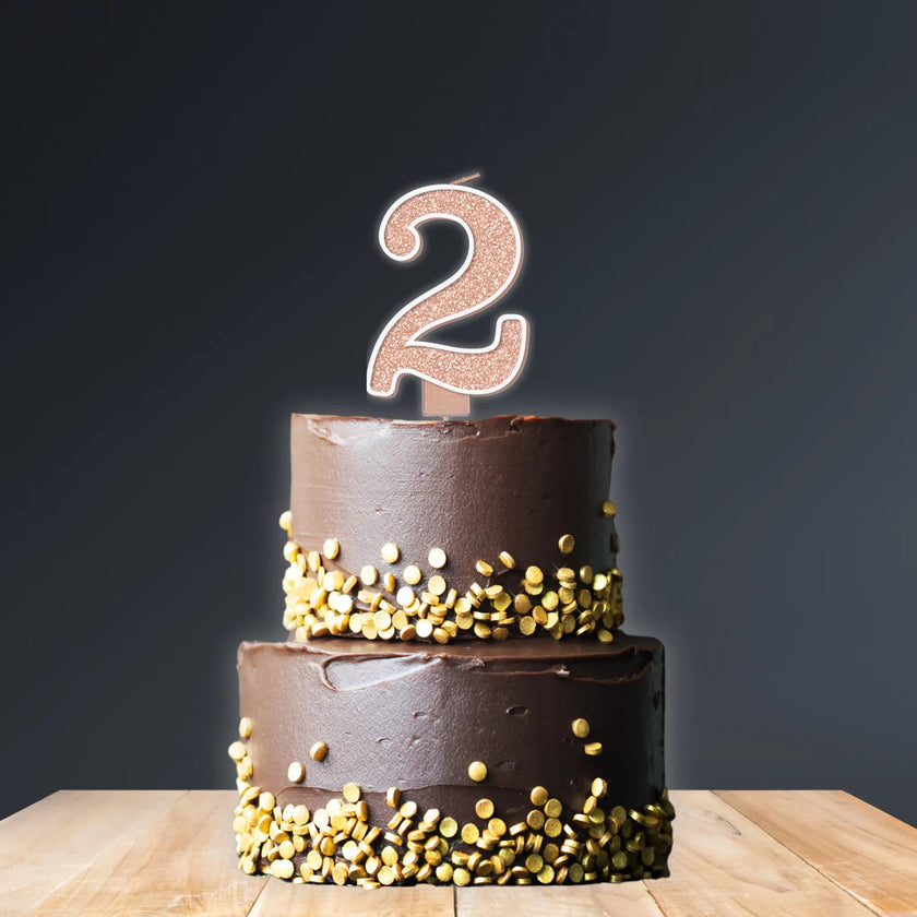 Sparkling Fizz Number 2 Candle – 7.5cm Rose Gold Birthday Cake Candle
