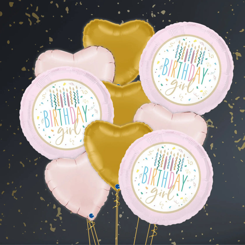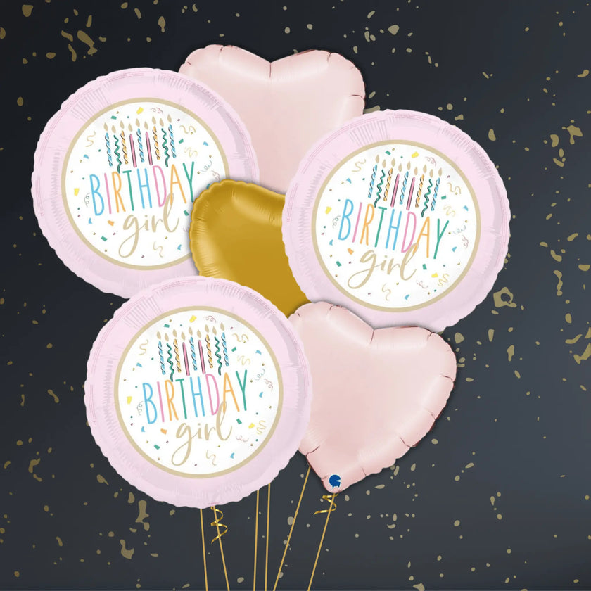 18" Birthday Girl Foil Balloon – Pastel Colours (Single or Bouquet of 3, 6, 9)
