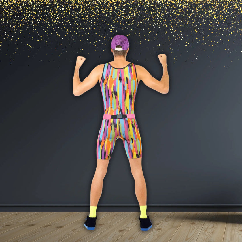 Men's 80s Retro Tracksuit Costume – Blue & Neon