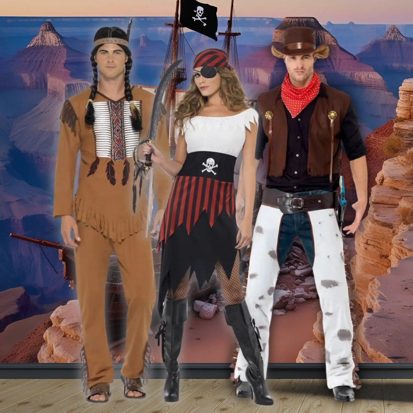 Adventure awaits! Saddle up, set sail, or scout the frontier with our Cowboys, Indians & Pirates fancy dress collection. Whether you're looking for Wild West flair, tribal-inspired looks, or swashbuckling pirate outfits, we’ve got costumes and accessories to bring your party to life. Perfect for themed nights, school dress-up days, stag parties, and Halloween. Available for Click and Collect, in-store, local delivery across Cheltenham, and national UK shipping. Live out your wildest costume dreams with The Party Hut Cheltenham.