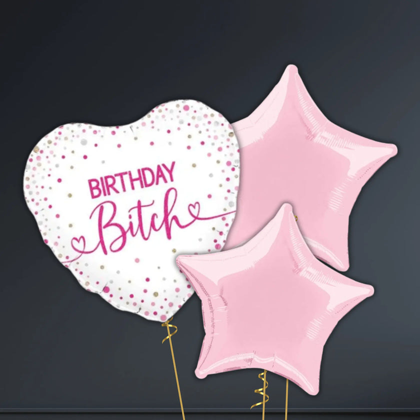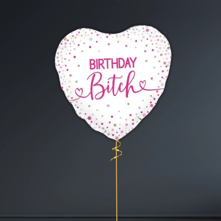 💖 18" Birthday Bitch Holographic Heart Balloon Bouquet – Helium-Filled 🎈