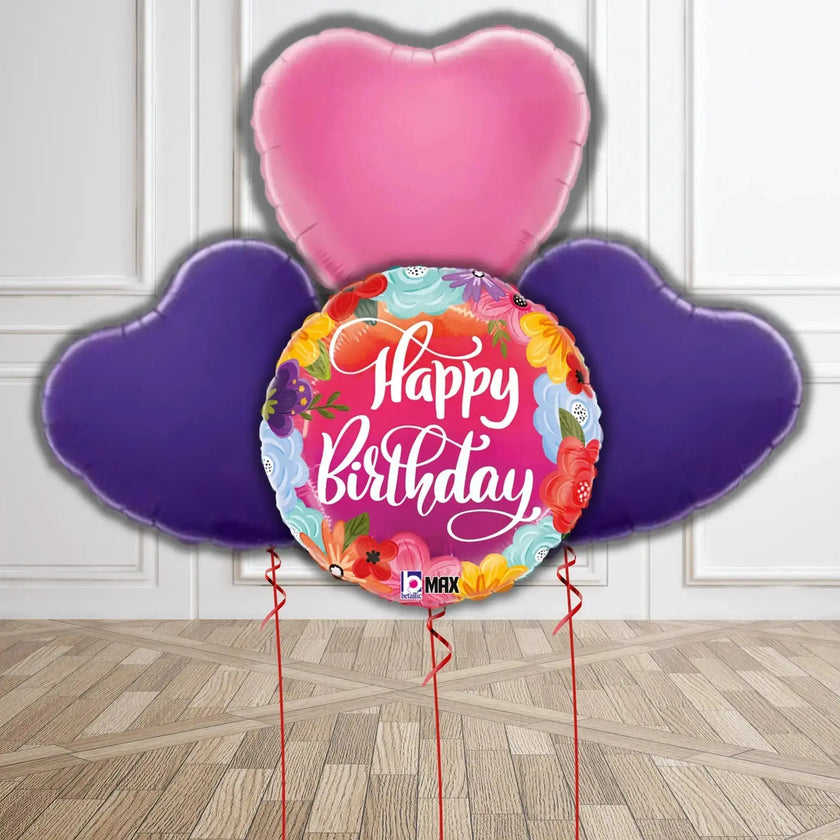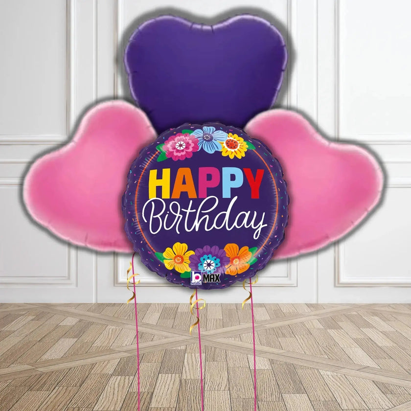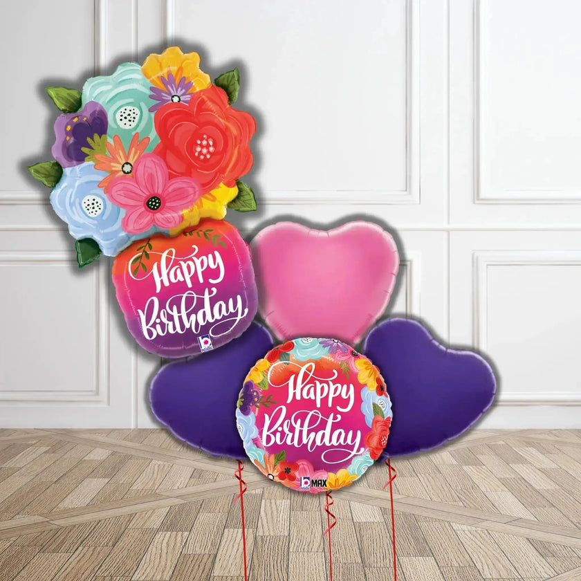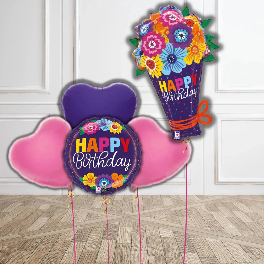 Floral Burst Happy Birthday Balloon Bouquet