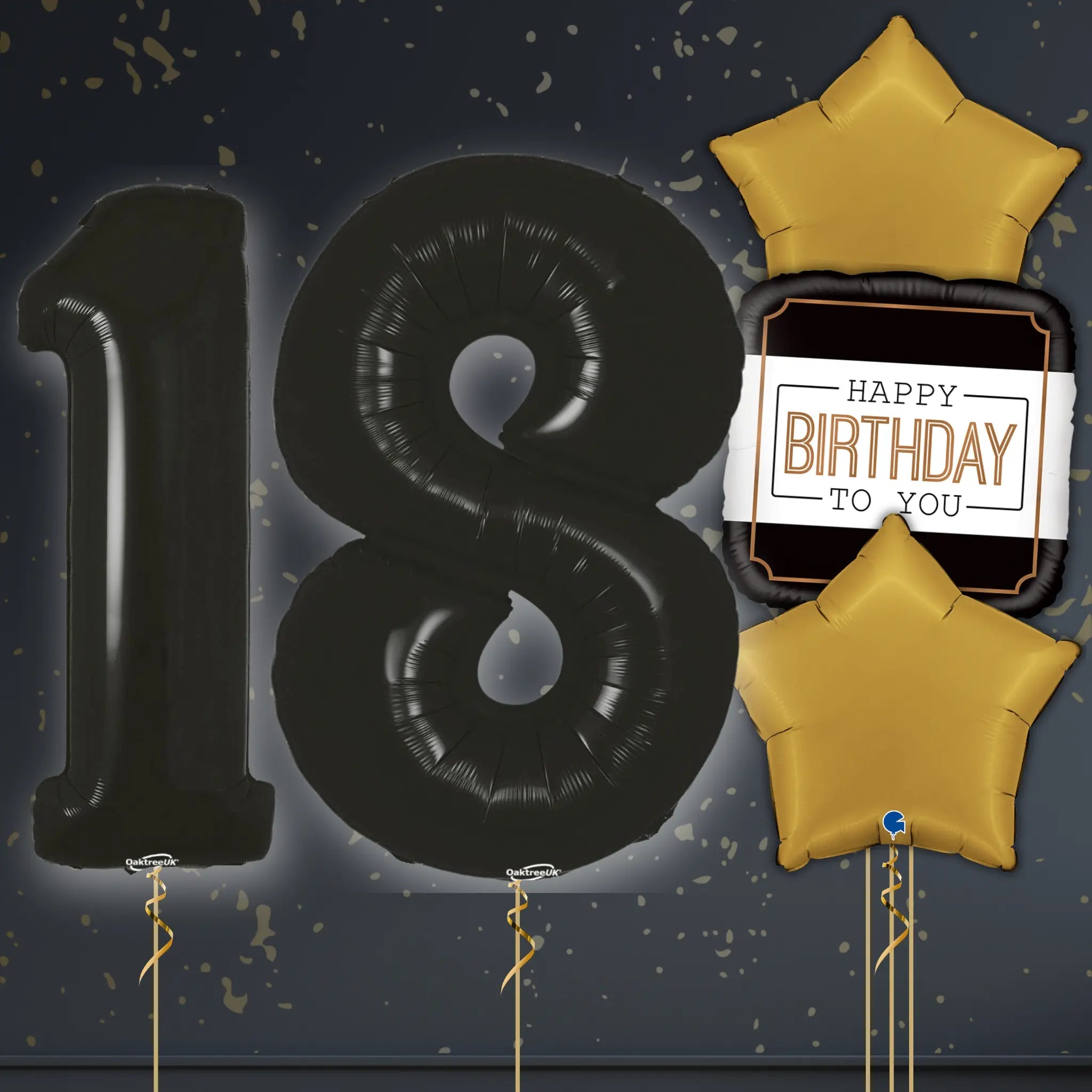 3️⃣ Black Number 18 + Vintage Birthday Balloon + 2 x 18” Gold Star Balloons