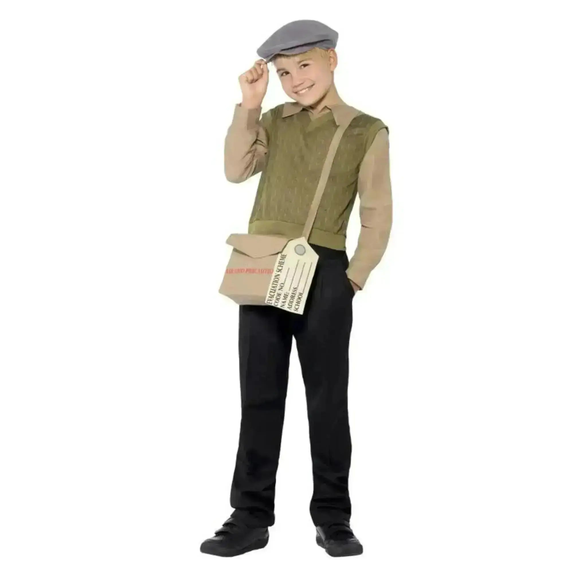 Get ready to travel through history with our Evacuee Boy Kit! 🌳🌼 Dive into the past and embrace the era of wartime with this complete ensemble. The kit features a cozy jumper with an attached mock shirt, capturing the essence of school days during that period. The coordinating hat, bag, and authentic evacuee tag complete the look, transporting you to a time of resilience and camaraderie.