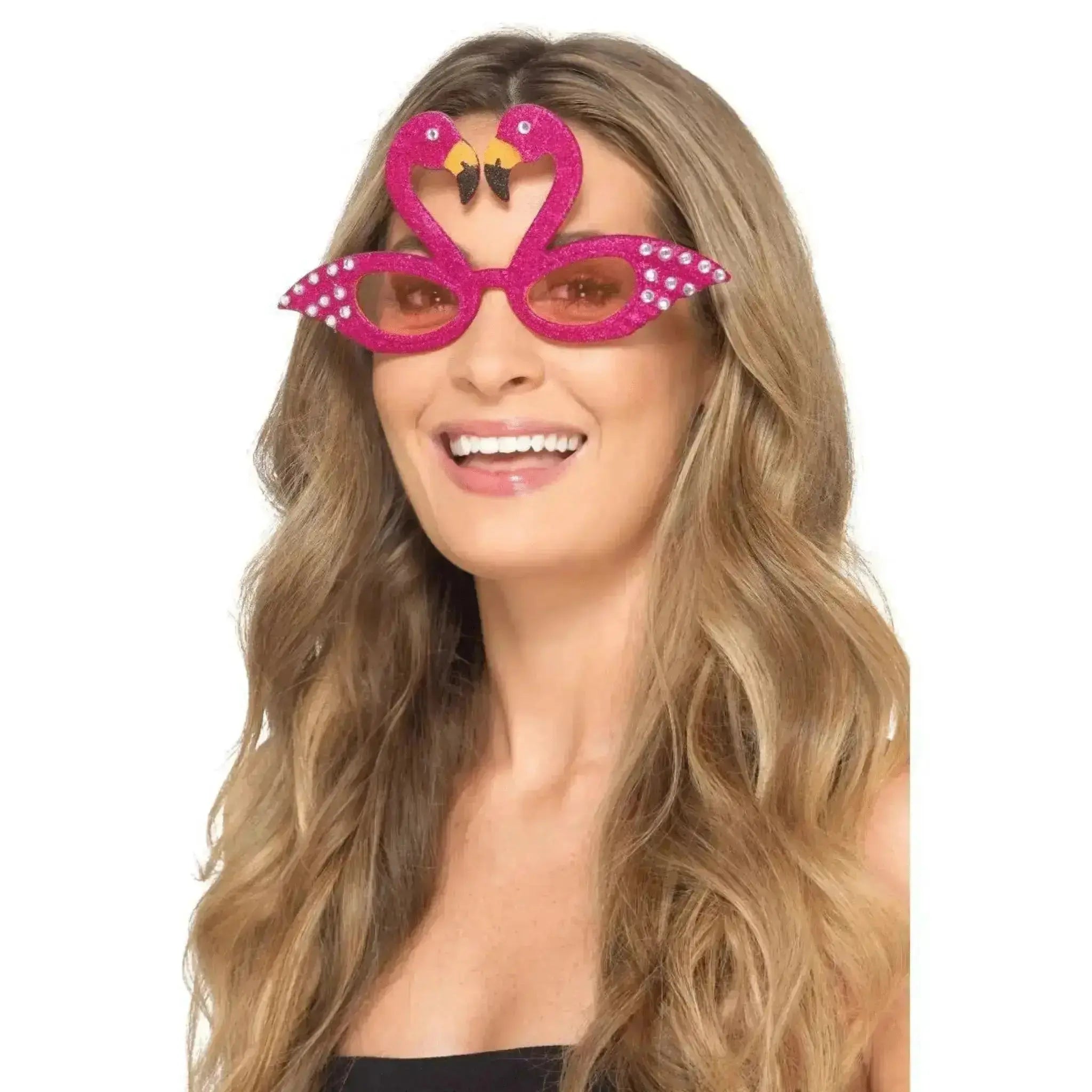 Flamingo glasses are playful and vibrant accessories inspired by the iconic pink birds. These glasses typically feature frames shaped like flamingos, complete with long, slender necks forming the arms of the glasses and the bird's distinctive beak forming the bridge. The lenses often come in a variety of colors, such as pink or tinted shades, to enhance the flamingo theme.