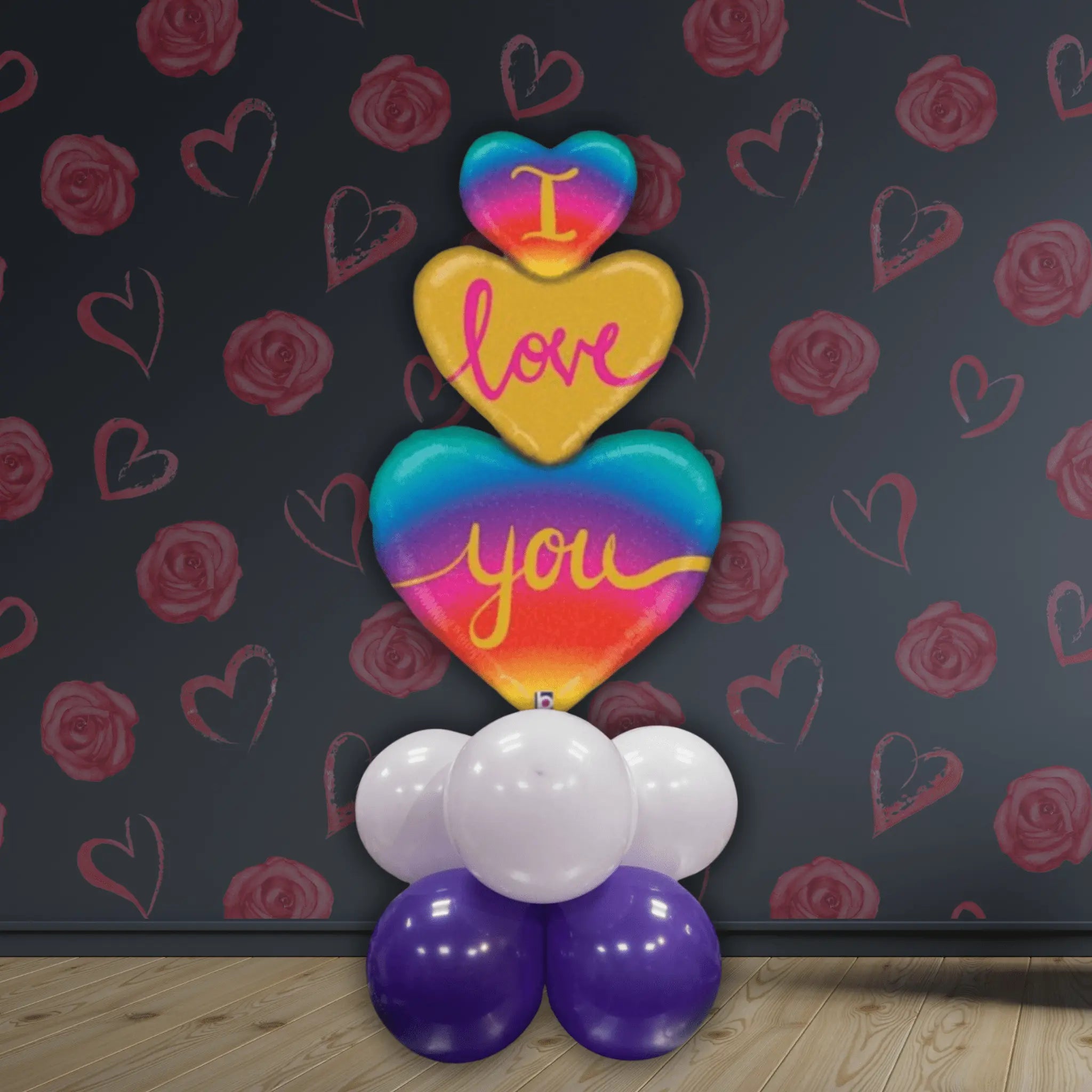 I Love You Rainbow Balloon Stack – 5ft Air-Filled Floor Display