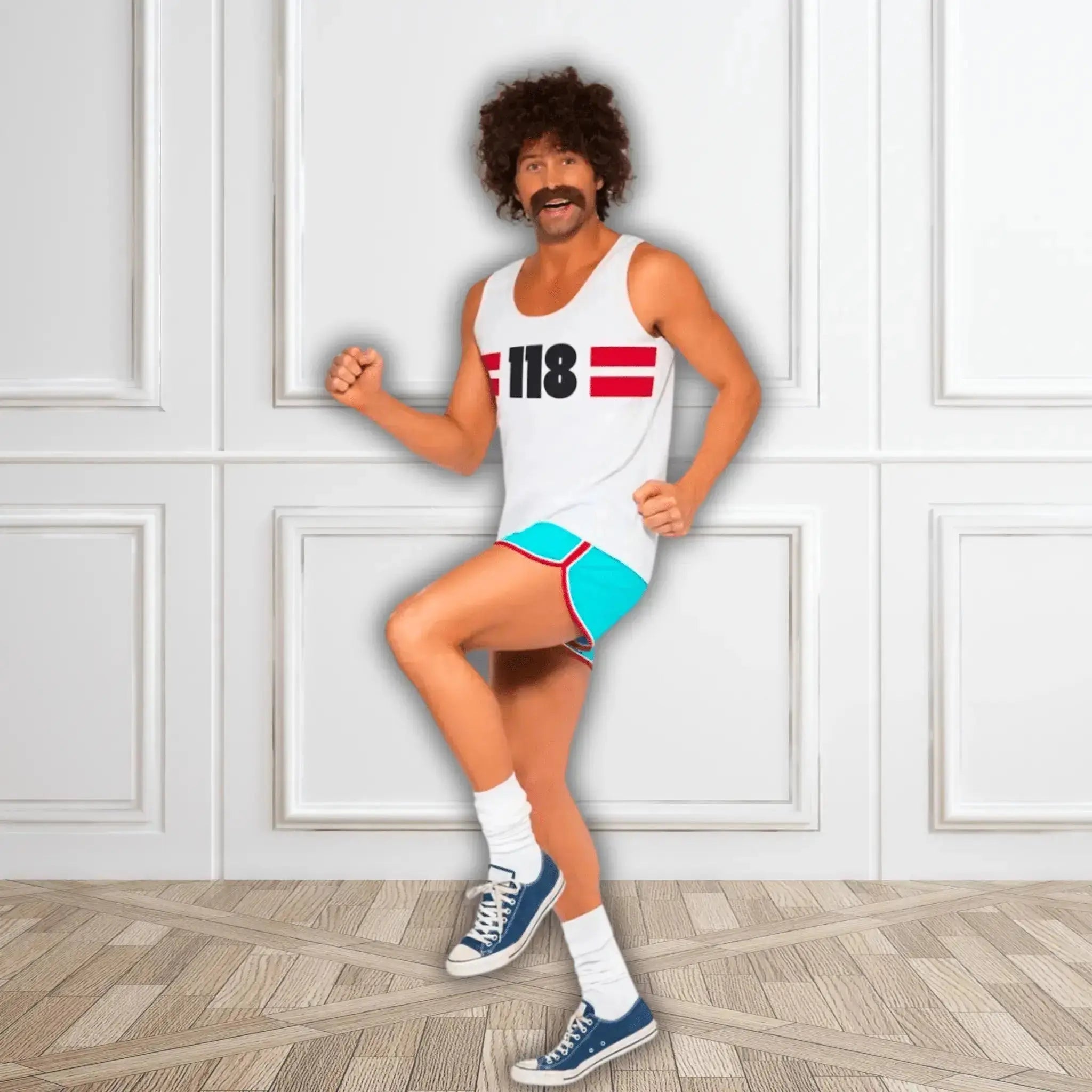Turn back the clock and make a statement with The Party Hut’s Men’s Retro Runner Fancy Dress Costume!
