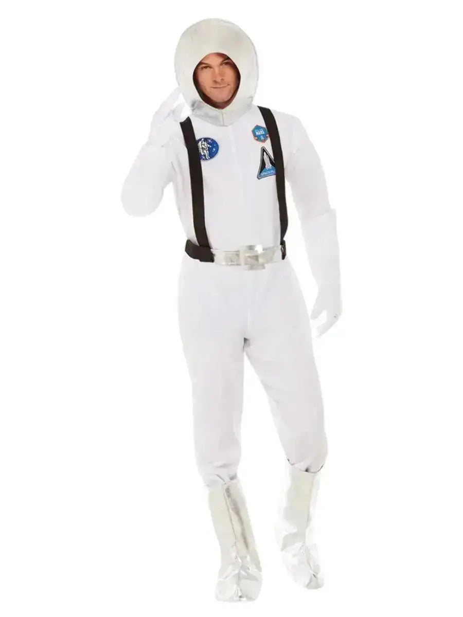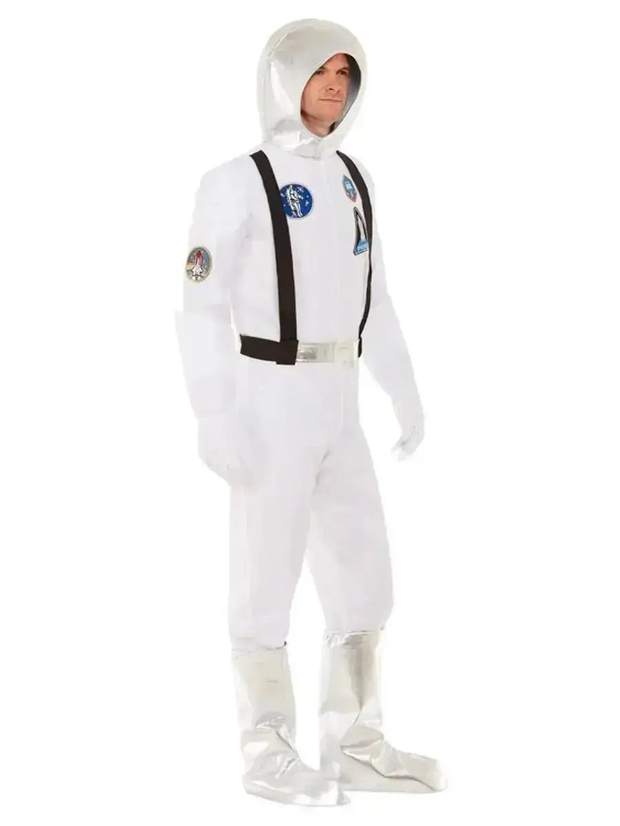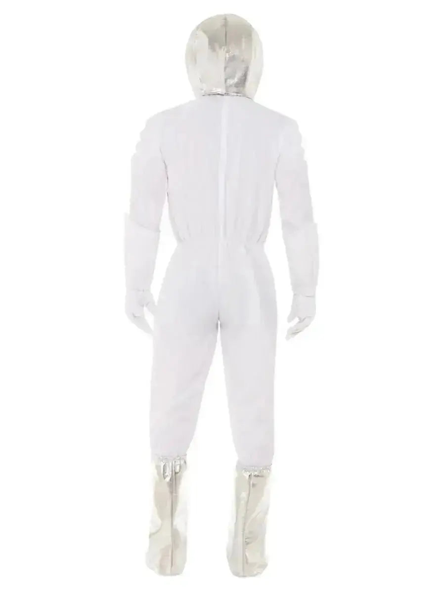 To complete the look, the costume includes boot covers and gloves that match the jumpsuit, adding a cohesive and polished finish to your outfit. Additionally, the included helmet adds an extra layer of authenticity, featuring a futuristic design with a tinted visor or intricate details reminiscent of space exploration gear.