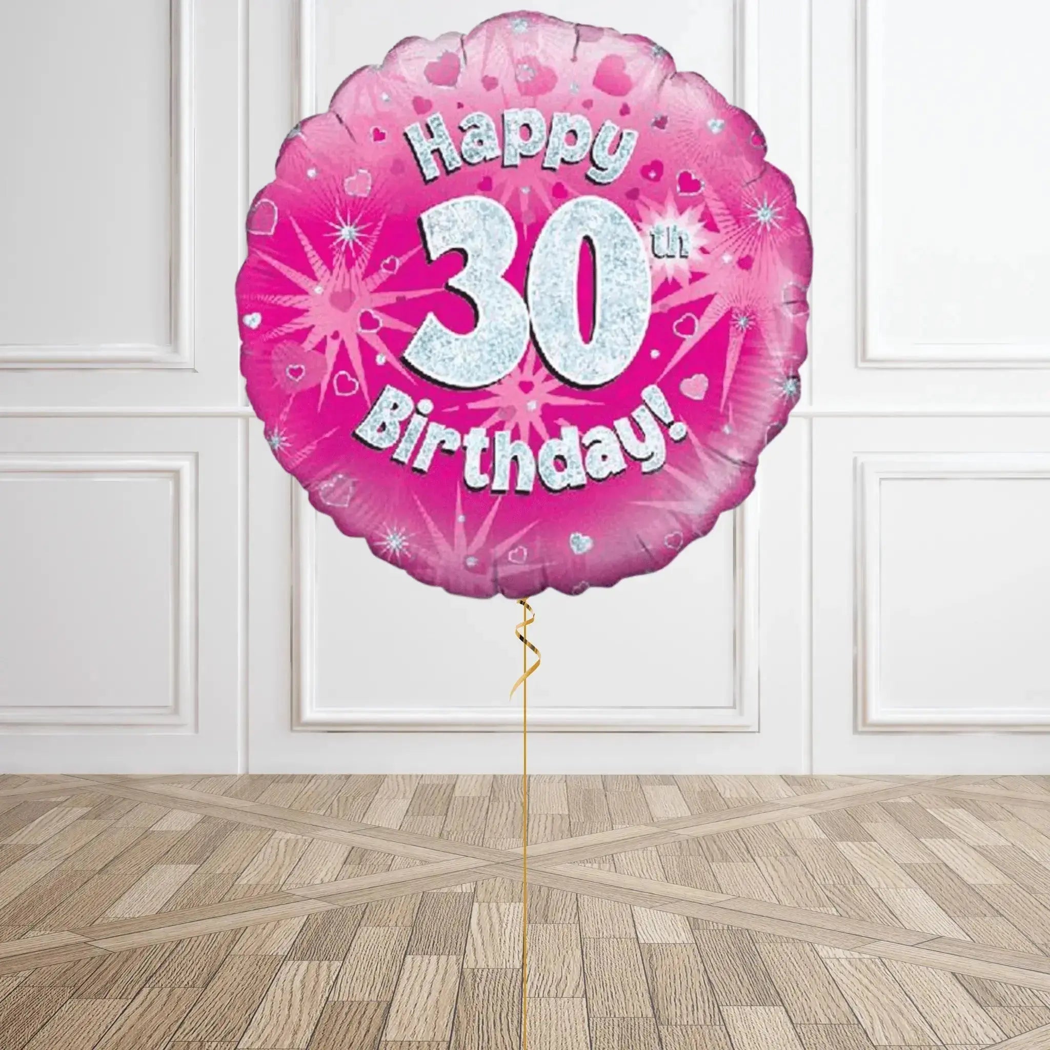 - Single Balloon: One large "30" Pink Sparkle foil balloon for a simple yet elegant statement.
