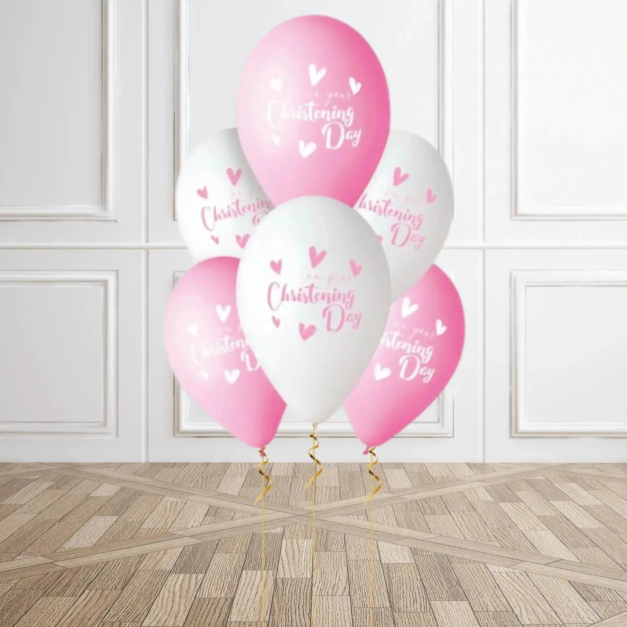 Pink & White "On Your Christening Day" Balloons – Pack of 6