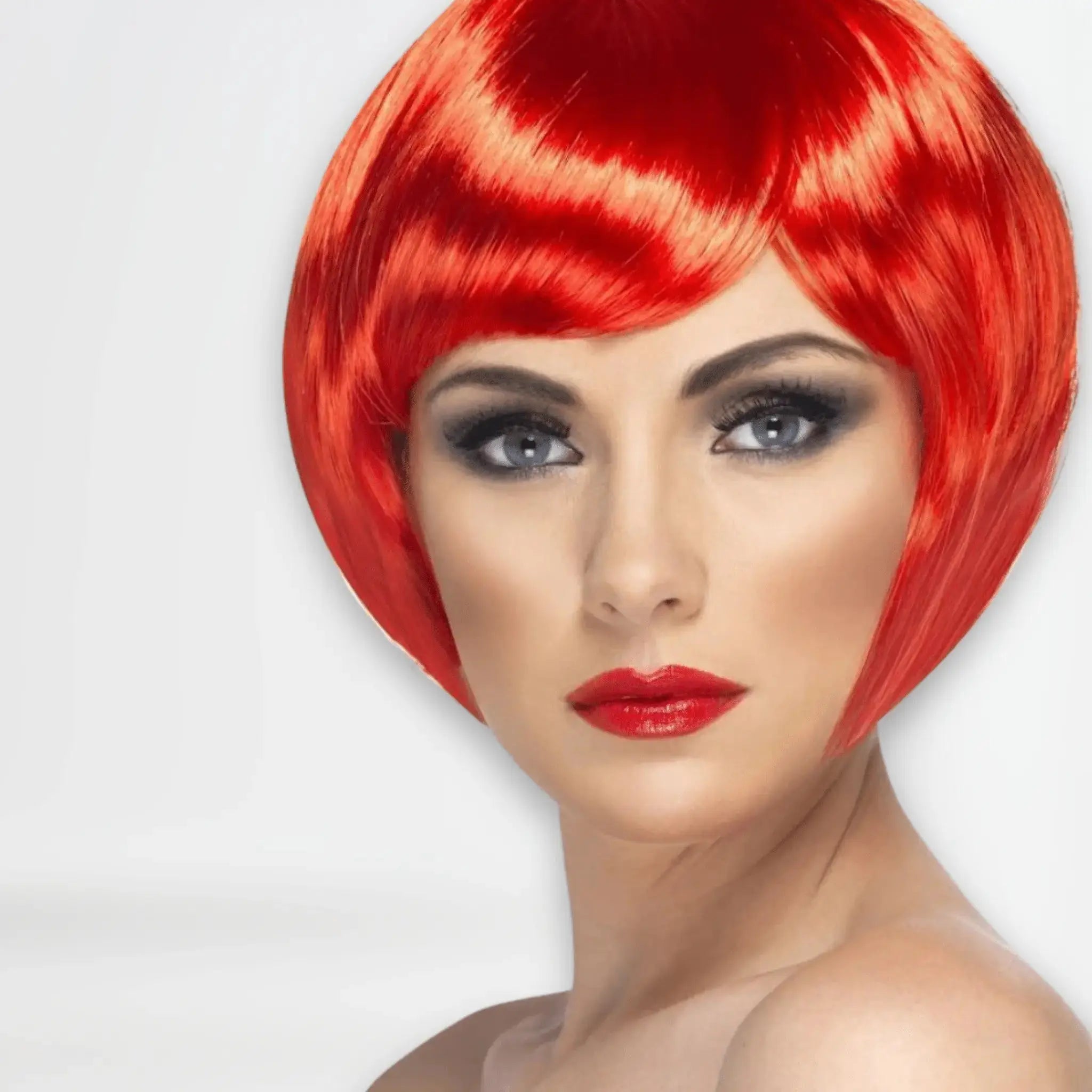 Turn heads with the bold and vibrant Red Short Bob Babe Wig with Fringe! This striking wig features a sleek, chin-length bob cut with a blunt fringe, perfect for adding a touch of drama and style to any costume or outfit. Made from high-quality synthetic fibers, this wig provides a natural look and feel, while its bright red hue ensures you stand out in any crowd. Whether you’re dressing up for a fancy dress party, cosplay event, or just want to make a fashion statement, this wig is the ultimate accessory.