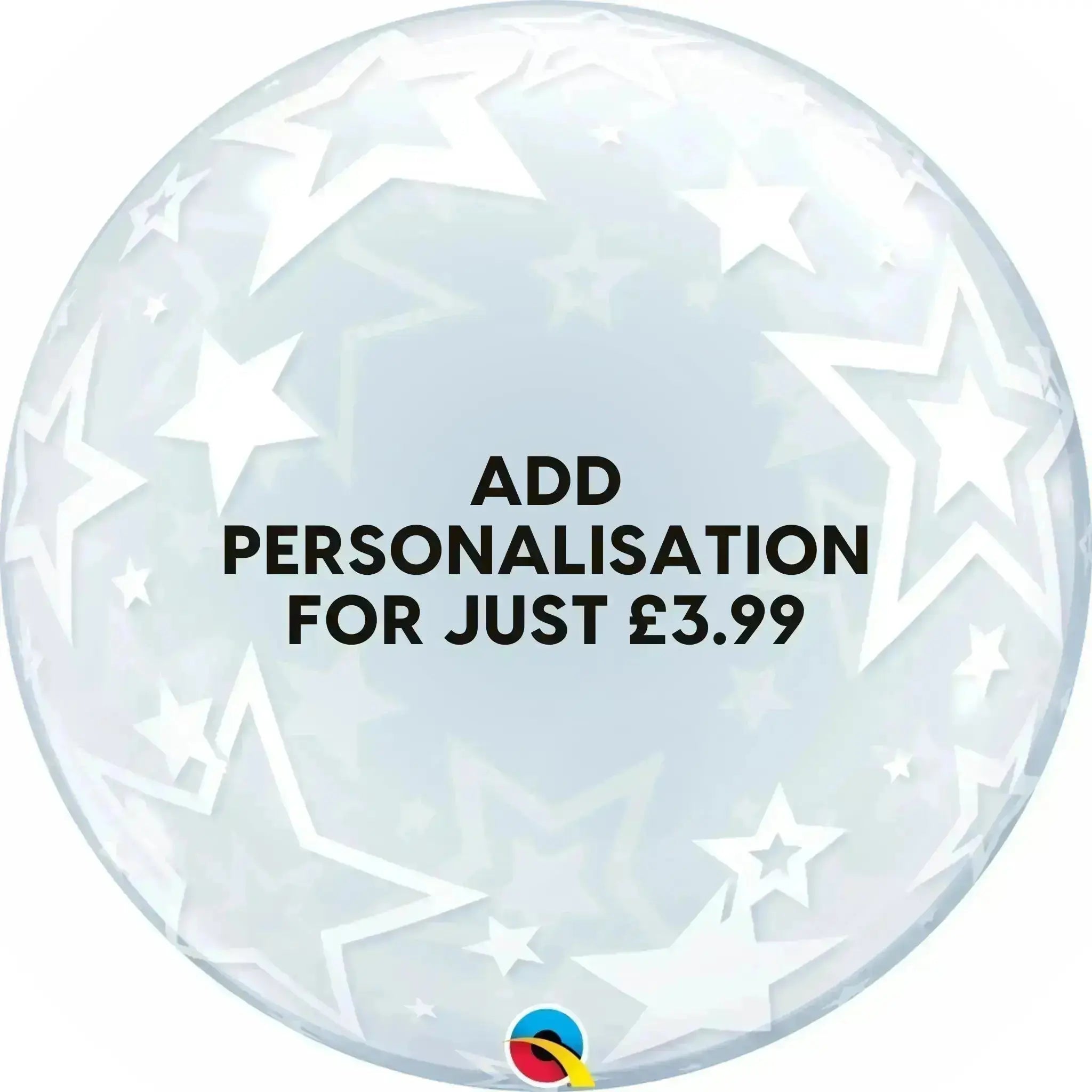 Our 24" Clear Balloon can be filled with helium for a floating display or air for a more grounded arrangement, providing flexibility to suit any event setting. What sets this balloon apart is its personalisation feature – you can add your own custom text to create a unique message, making it ideal for birthdays, anniversaries, weddings, and other special occasions. Whether you choose a heartfelt message, a celebratory greeting, or a name, the personalised touch ensures your balloon is memorable and meaningful. Elevate your party decor with this enchanting clear balloon with stars, and let your creativity shine through with personalised messages.