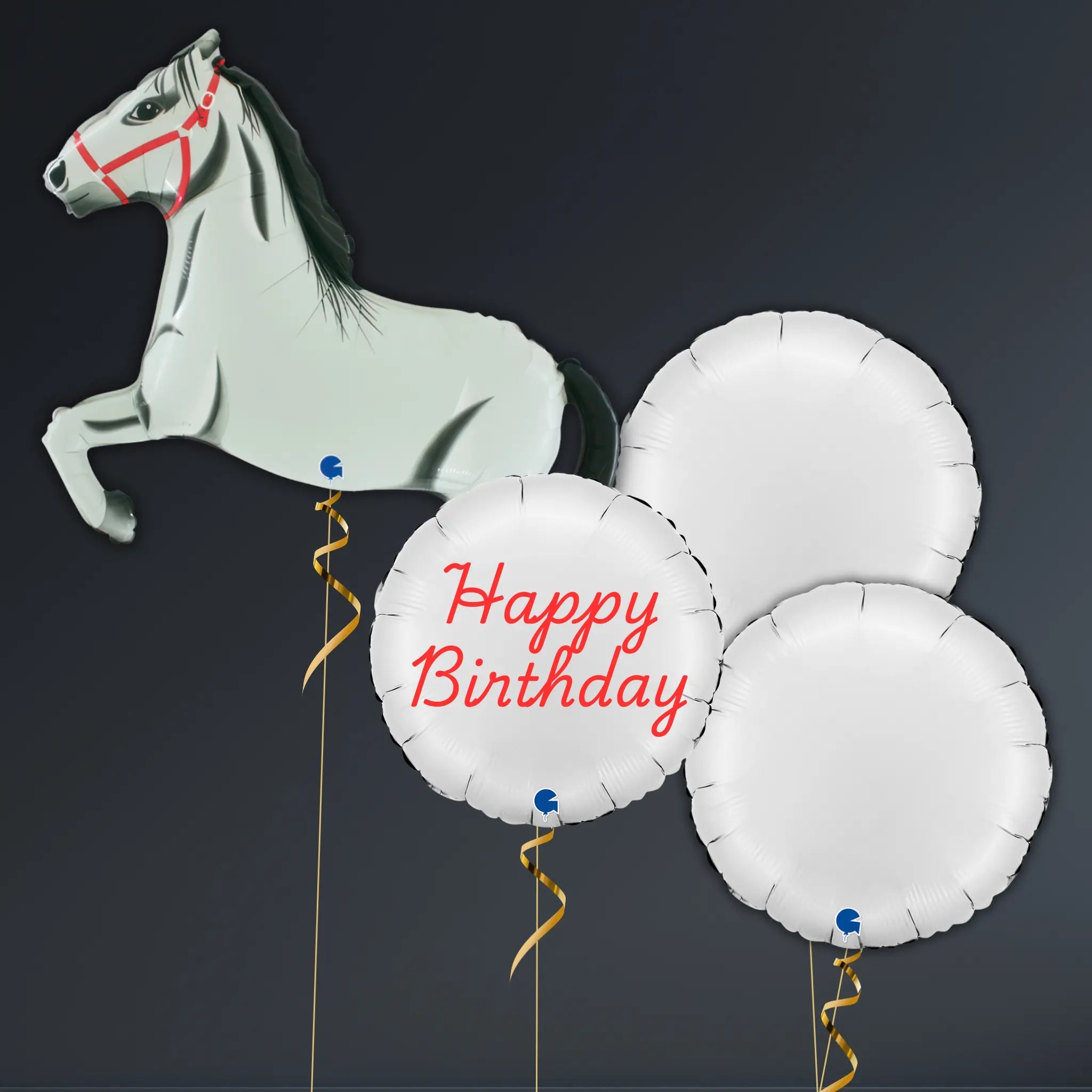 White Horse & Happy Birthday Balloon Package – Equestrian Birthday Decor